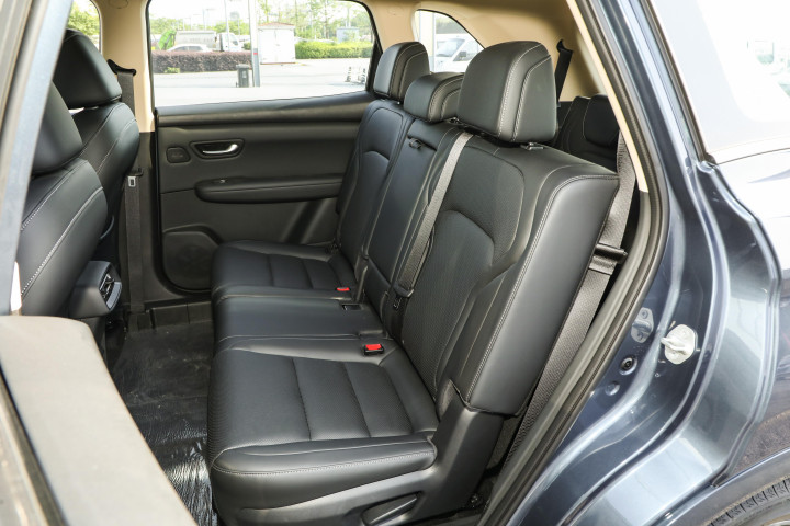 空间适配性是家庭用车的核心需求之一,这款车在座椅布局与储物设计上有明显针对性。它提供 5 座与 7 座两种选择,我先体验了 5 座版本:车内有效内长为 3162mm,我身高 180cm,调整好驾驶位座椅后,头部仍有一拳半左右的余量,不会产生压抑感,驾驶视野也足够开阔,能清晰观察前方路况。前排座椅支持电动调节,我很快找到了贴合身体的驾驶姿势,座椅填充物的柔软度适中,连续驾驶 2 小时后,背部与腿部的疲劳感并不明显。后排空间表现同样可观,腿部空间达 885mm,头部空间接近两拳,我坐在后排时,膝盖与前排座椅靠背仍有一定距离,可自由伸展;后排座椅靠背还能调节至 119° 的仰角,调整后坐姿类似家中沙发,长途乘坐时能有效缓解腰部压力。